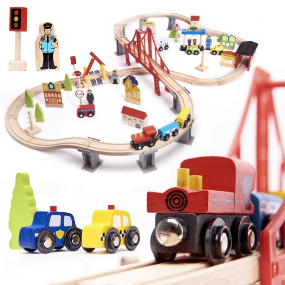 Kolejka drewniana dla dzieci – zestaw 70 elementów, wiek 3+